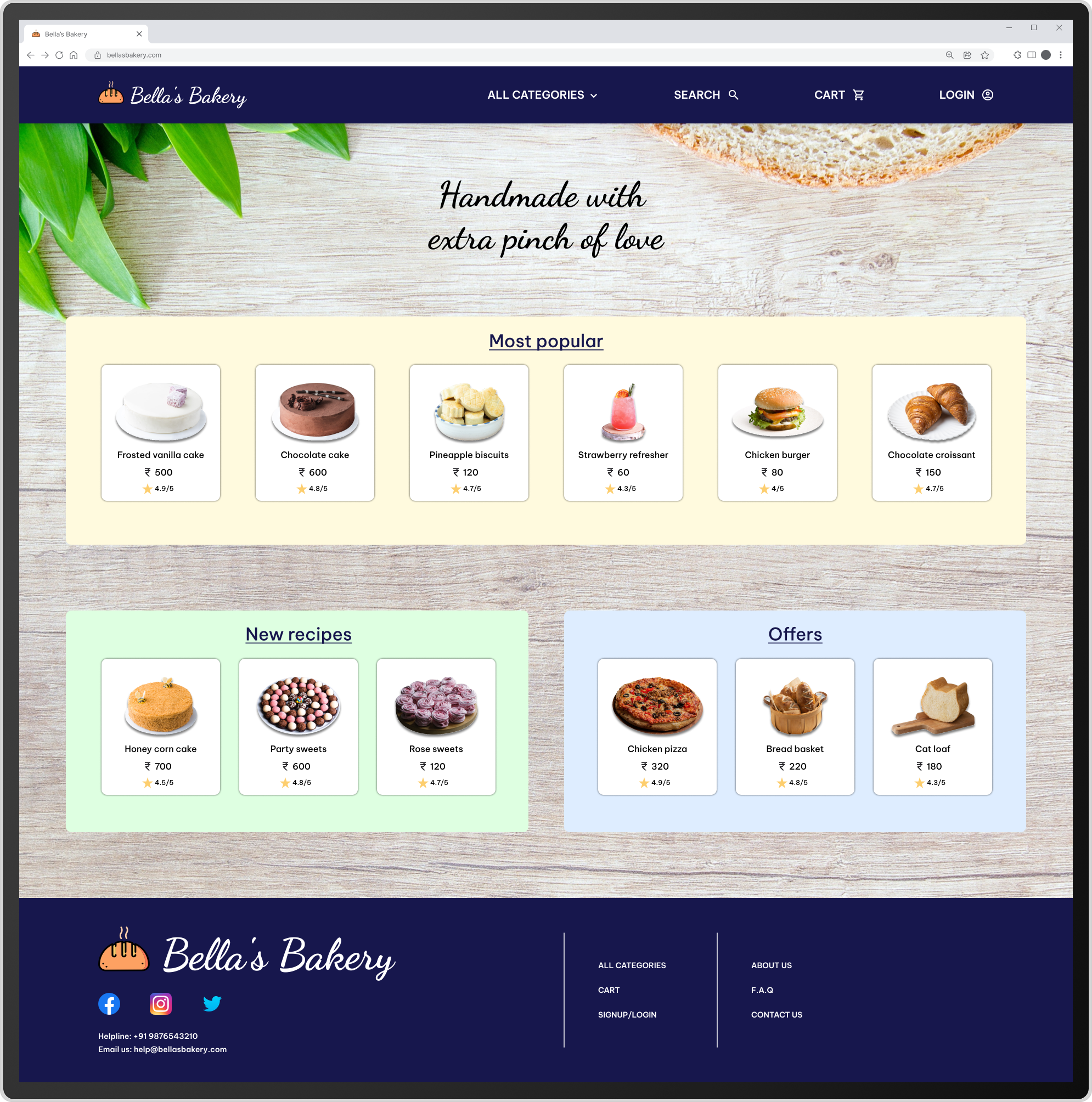 Bella’s bakery is a conceptual case study of designing an online bakery E-commerce store for users to quickly order their favorite baked goods, sandwiches, pastry, cakes etc. The website allows users to schedule a safe and contactless in store pick-up or home delivery.
