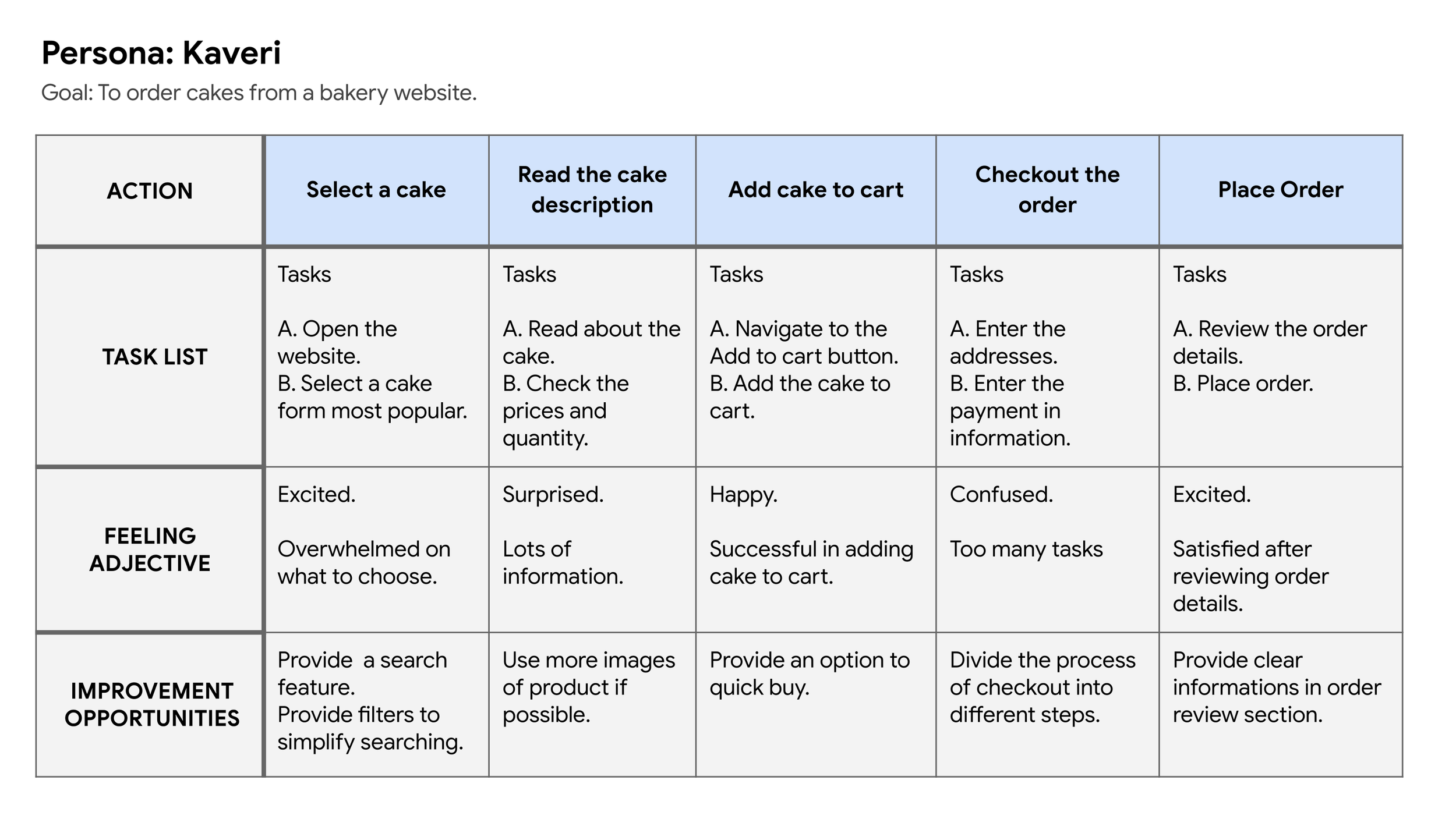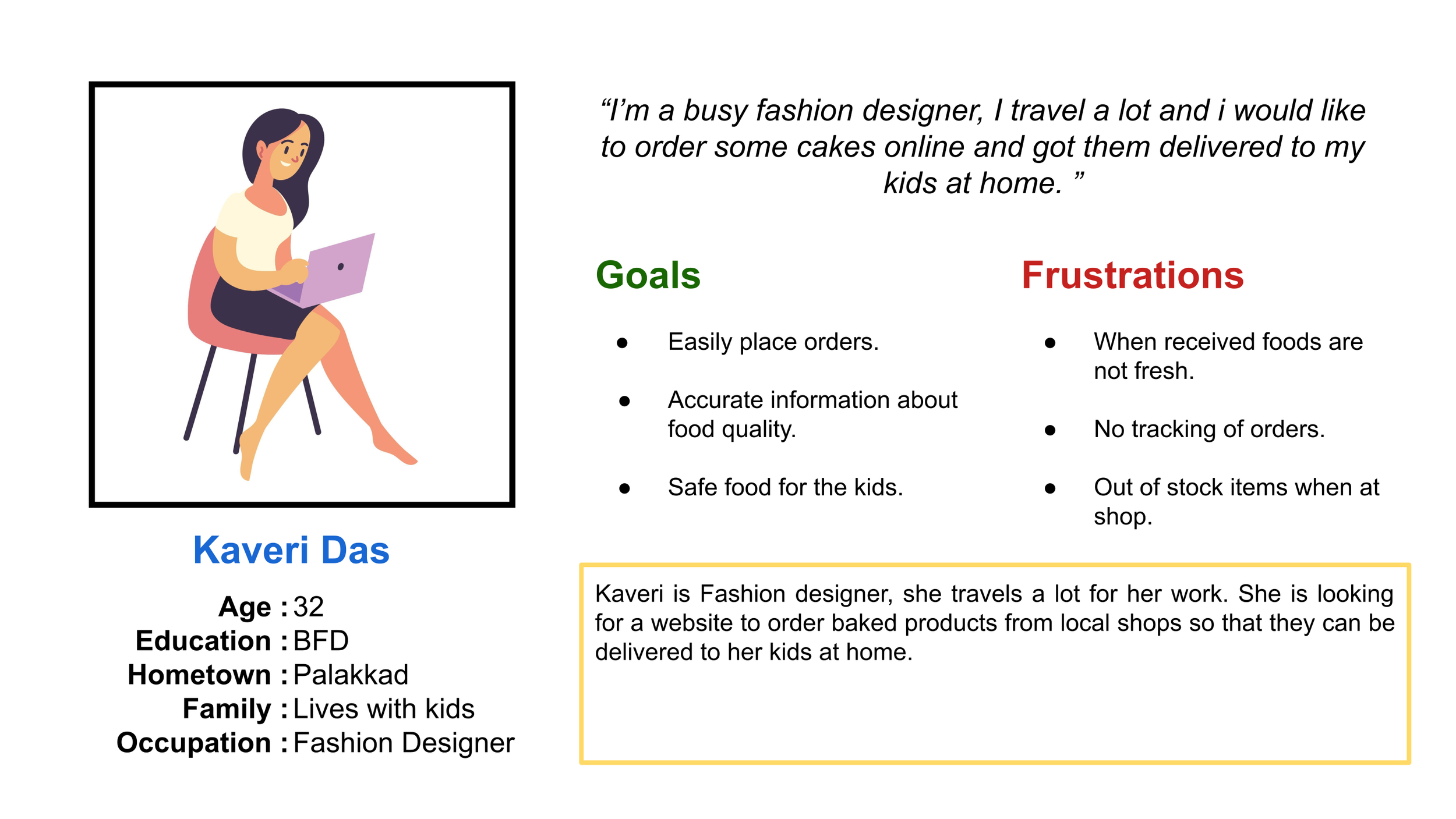 Mapping Kaveri’s user journey revealed how helpful it would be for users to have access to a bakery website.