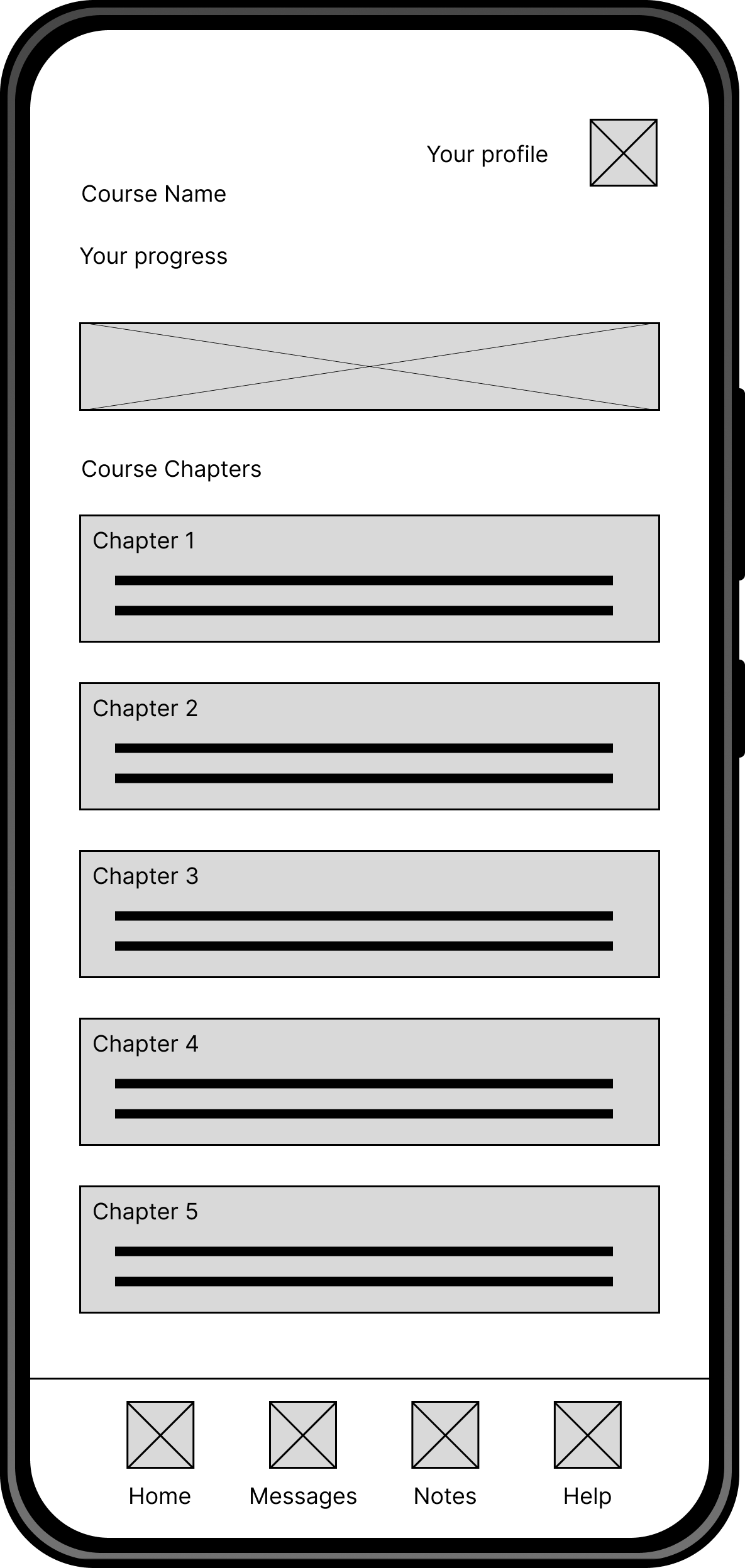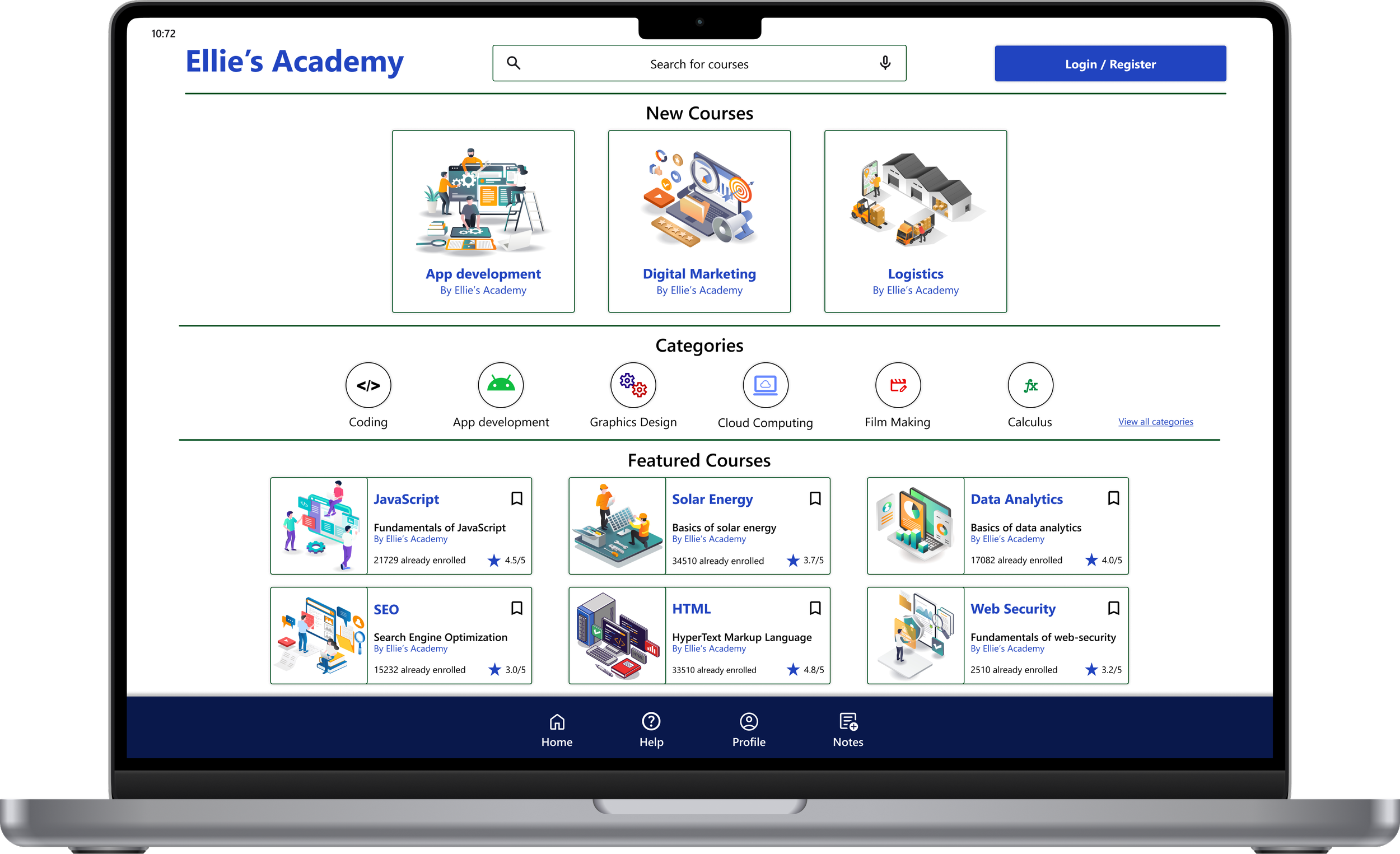 For the home screen, I prioritized mainly for search, featured courses and course categories.
